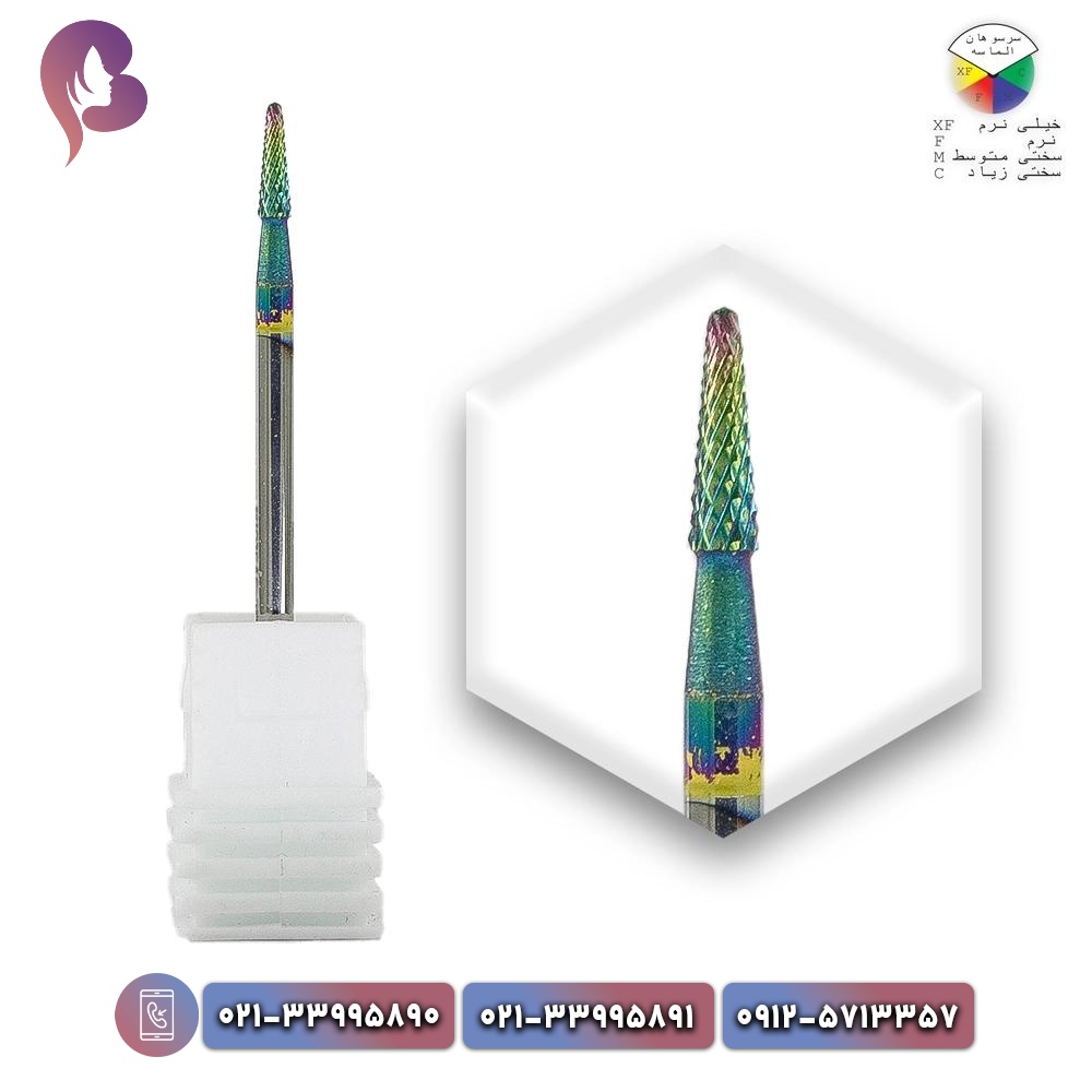 سر سوهان الماسه ناخن کاجی باریک نوک تیز دور گیری کروم نوار زرد